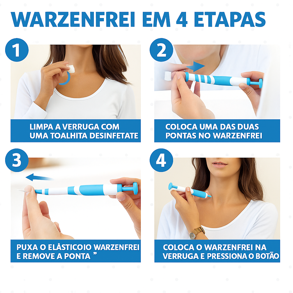 💡 Dica: Evita arrancar ou cortar as verrugas manualmente — o método Warzenfrei é mais seguro, indolor e eficaz.
